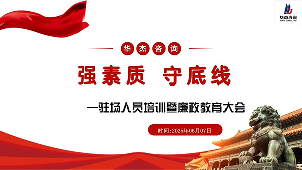 6月7日,浙江華杰工程咨詢有限公司舉辦廉政、安全生產(chǎn)教育與工程管理專項(xiàng)培訓(xùn),公司領(lǐng)導(dǎo)班子、各項(xiàng)目駐場(chǎng)人員百余人參加。培訓(xùn)圍繞廉政、安全生產(chǎn)教育和專業(yè)賦能展開。...