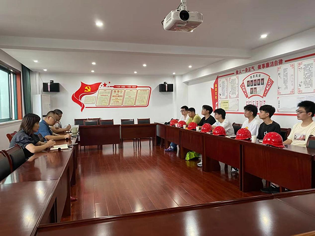2021年6月30日上午在公司十二楼会议室召开金华市技工学校“华杰”班毕业生入职见面会。公司董事长吴晓、副总经理徐宏伟、行政部主任陆惠芬和七位新入职员工参加了会议。