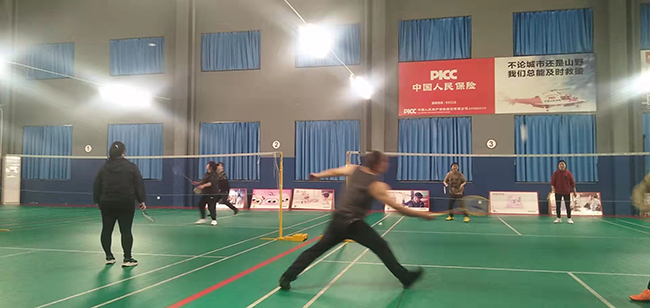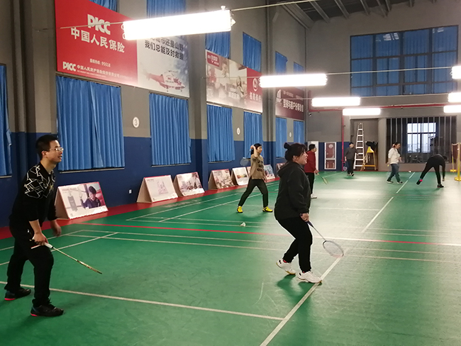 下班后,在党支部书记兼球队队长朱武阳和工会主席张小弟的带领下,一行30余人于17:30准时来到了球馆,为了让员工轻松上阵,公司工会已提前为大家开好了场地,准备好了羽毛球和矿泉水,大家一到,马上仨仨俩俩、同部门和同部门、球技好的和好的、难得练的和难得练的......半个球馆的场地一字排开,各自组队,动了起来。你方上罢我登场、你累了我接上,个个生龙活虎、精神抖擞,舒筋展骨,自得其乐。整个球场洋溢着“切磋球艺、团结向上、交流健康”的良好氛围。