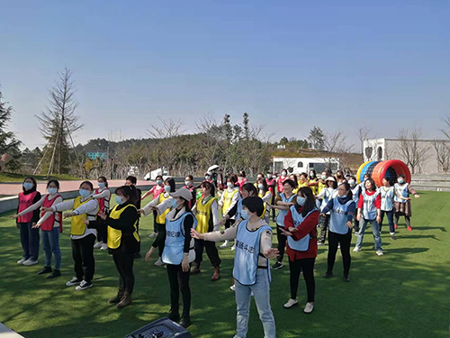 活动第二项:由教官带领我们在圆形广场开展系列团建小游戏:“互动操《抓钱币》”、“转圈立杆”、“鼓动人心”、“流水传球”。活动开场根据各位女神的身高分成三组,首先来一段抓钱互动操,女神们伴着音乐,跟着教官挥舞着双手,扭动着小蛮腰,尽情的释放着自己。接下来,根据规则每组各自推选好队长,商议好队名、队歌和口号。分别是:“美少女队”、“仙女队”和“女王队”……。最后每组队在《征服》、《爱拼才会赢》和《铿锵玫瑰》的队歌中,齐心协力、团结一致用各自的智慧和力量完成了一个个互动小游戏。充分展示了“华杰”女性阳光、积极、向上、团结的精神风貌。