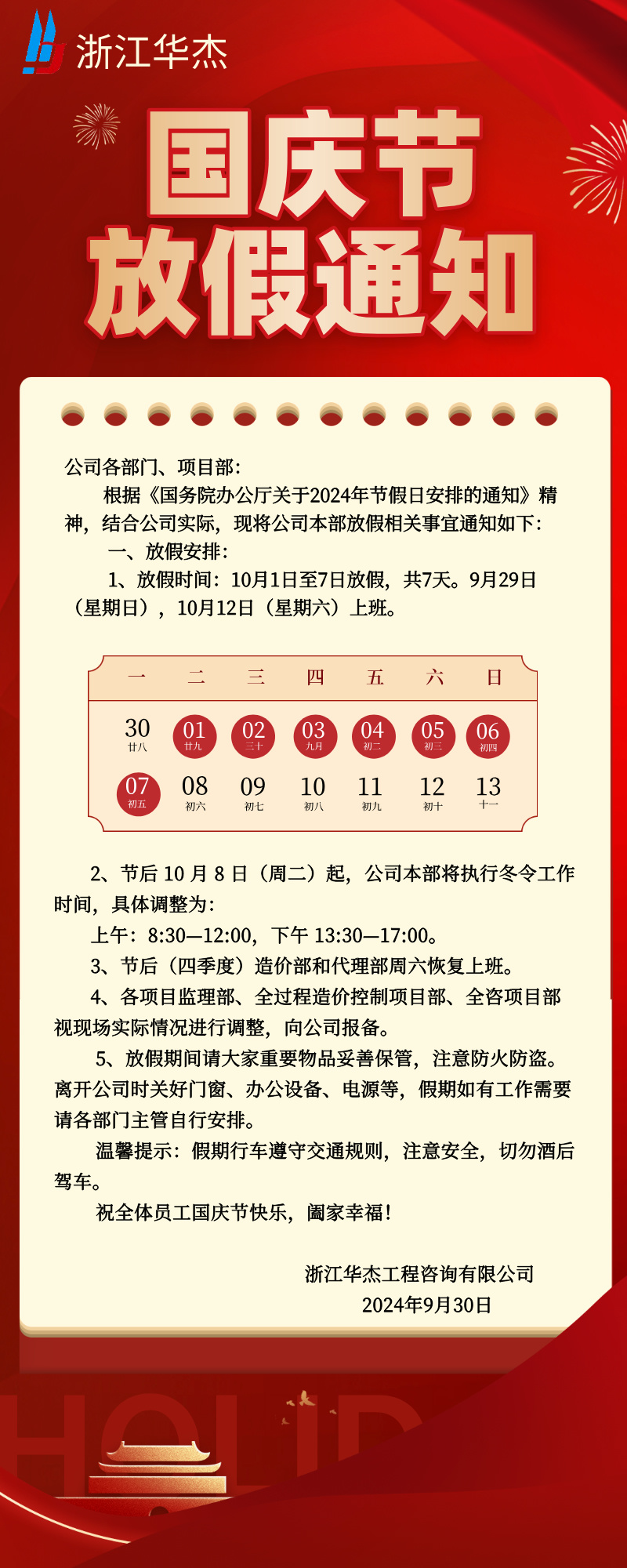国庆节放假通知